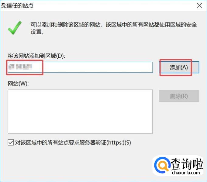 然后我们输入网站,之后我们点击添加,然后我们点击关闭就设置好了。