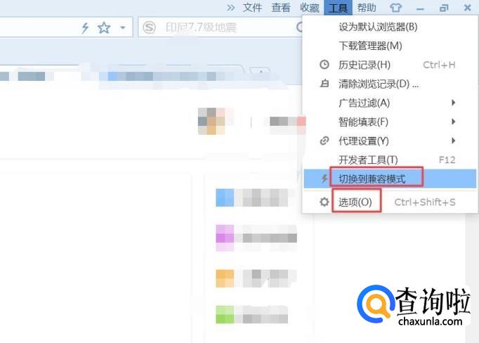 然后我们就可以看到切换到兼容模式了,我们点击它就可以切换到兼容模式了;我们之后点击选项;