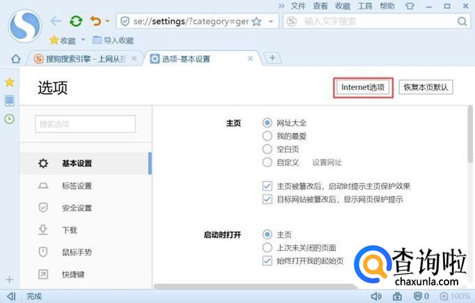 弹出的界面,我们点击Internet选项;