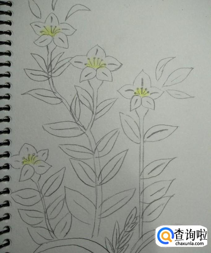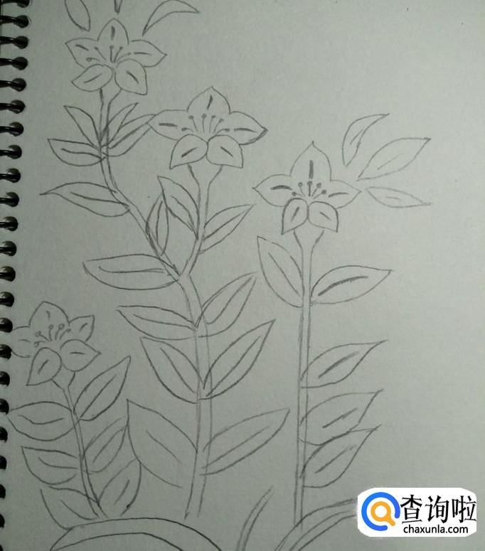 然后画出花杆花叶