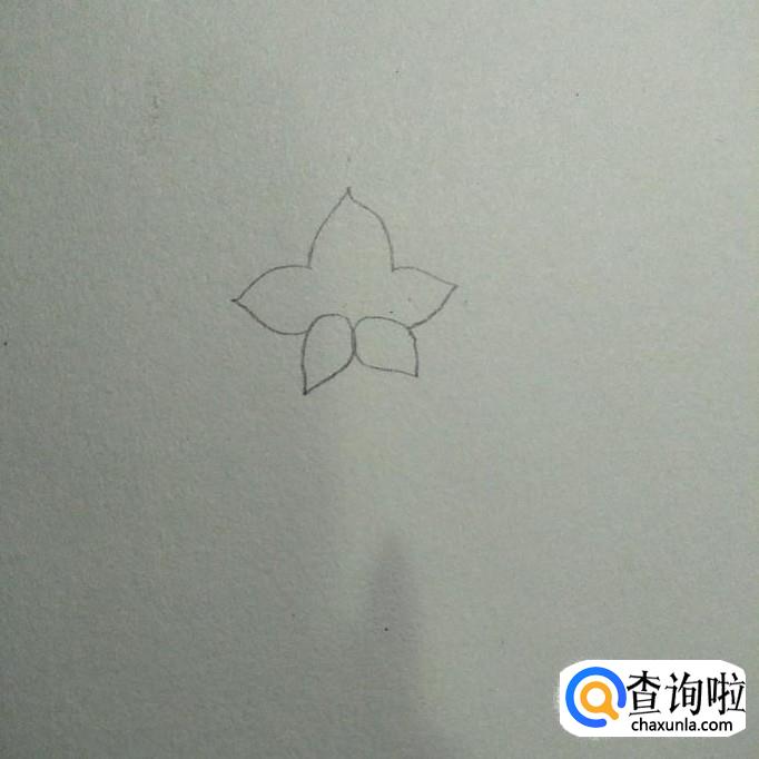 先画两片花瓣尖端向下的花瓣,如下图一,然后画三片连着的花瓣,如下图二