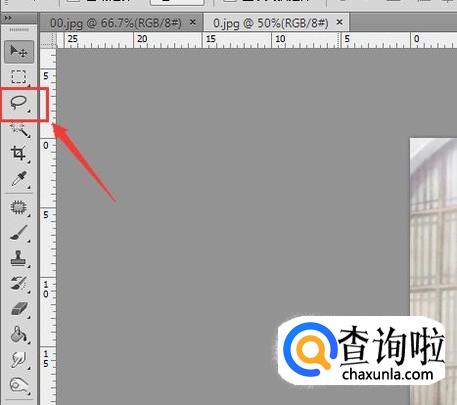 使用ps将我们的图片打开然后在工具箱内找到套索工具,如图所示: