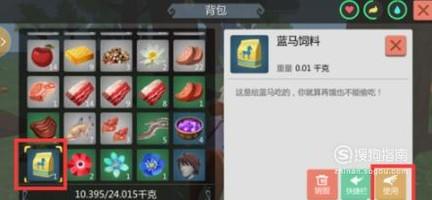 将蓝马击晕后,点击包裹,再点击包裹里的“蓝马饲料”,然后点击“使用”,喂养到系统弹出“喂食成功,它很高兴,快继续喂食”就可以了。