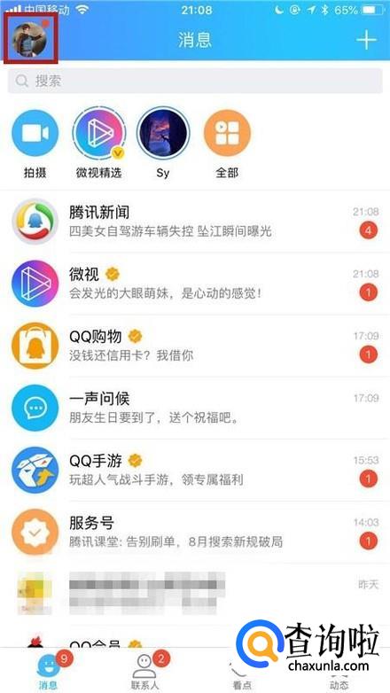 然后点击屏幕左上方的个人头像,如下图所示。