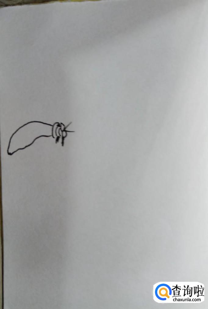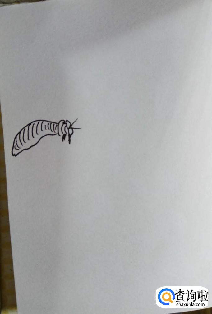 在白纸上先画出小蜜蜂的触角和两只眼睛,小蜜蜂的触角不是很长,眼睛是比较大的,要抓住这个特征。