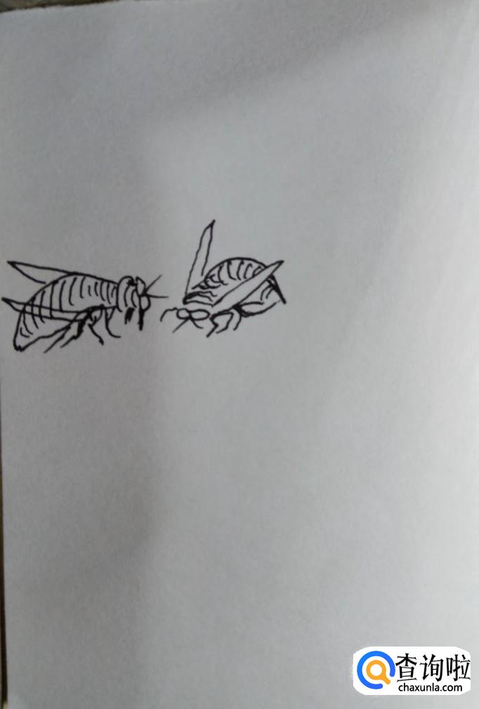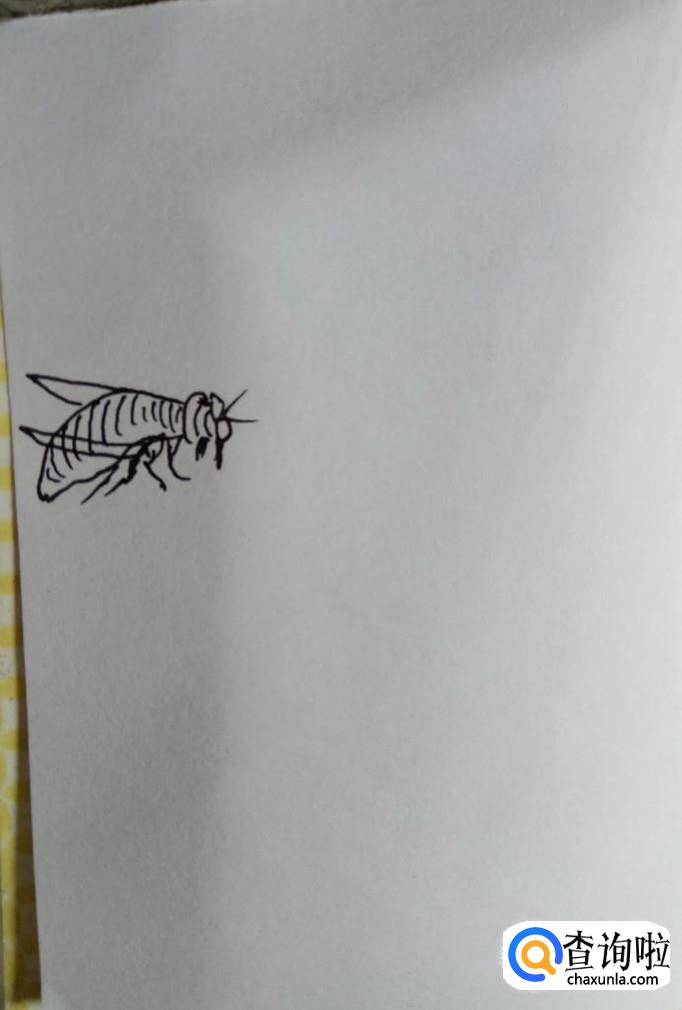 画出蜜蜂的两个翅膀和所有的腿,蜜蜂拍打翅膀的速度是非常快的,所以蜜蜂虽然小,但是攻击性是很强的。