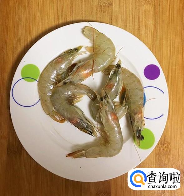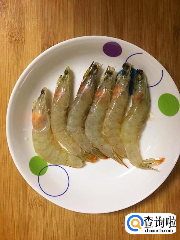 解冻后的大海虾清水冲洗干净,剪去虾脚,挑去虾肠。