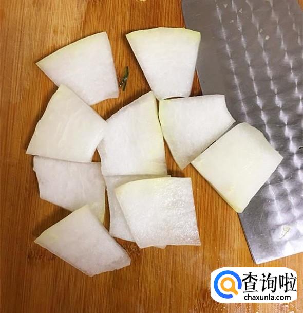 冬瓜洗净后去皮,然后切成薄片。