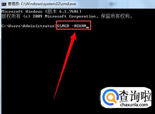 选择后会弹出一个新界面,我们在后面输入“SLMGR -REARM”,如下图所示。