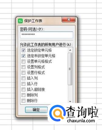 然后输入你的密码并勾选选定锁帝单元格,如下图所示。最后点击确定就可以了。
