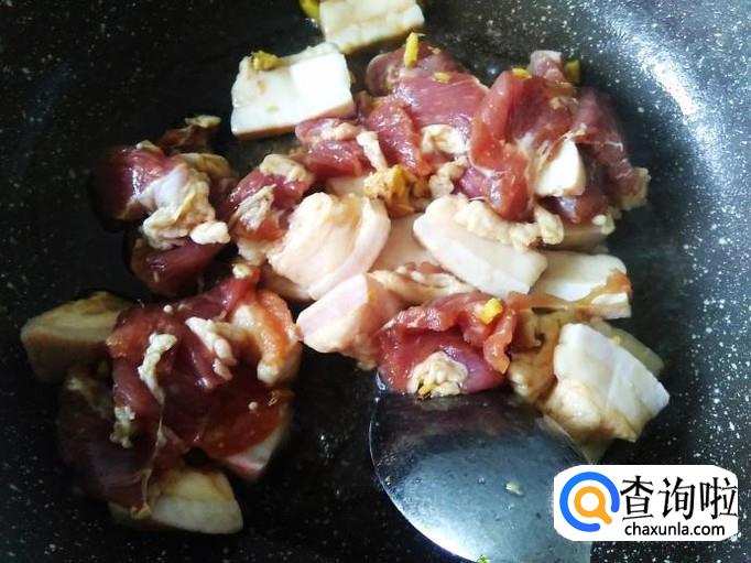 再开火下油,放腌好的猪肉进去。