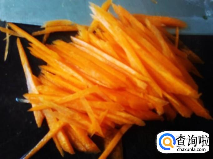 红萝卜去皮,然后切成丝。