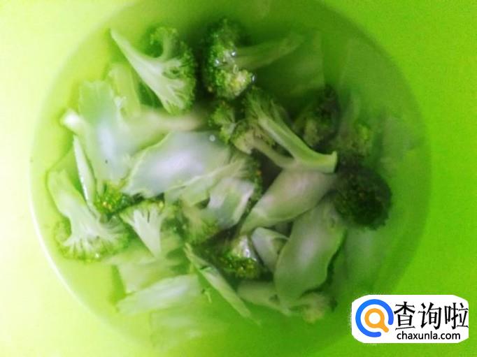 首先把西兰花清洗干净,然后把西兰花梗皮削去,切成片,西兰花切成小朵朵。
