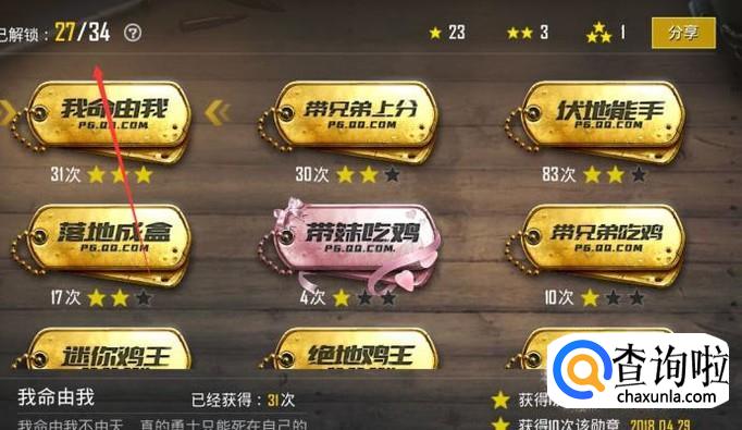 另外至于荣誉的称号,仅仅有三十四个,这是根据你在游戏中的表现进行表彰的,而且也分为几个星,从一星到三星难度比较大。