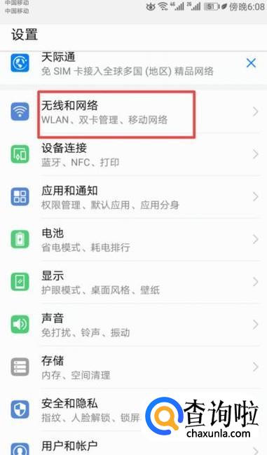 然后我们点击无线和网络;