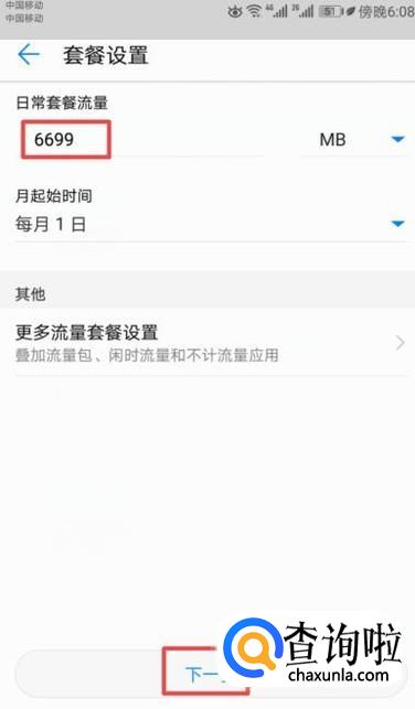 然后输入流量,之后点击下一步;