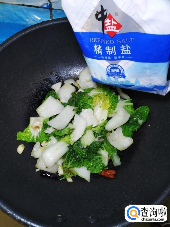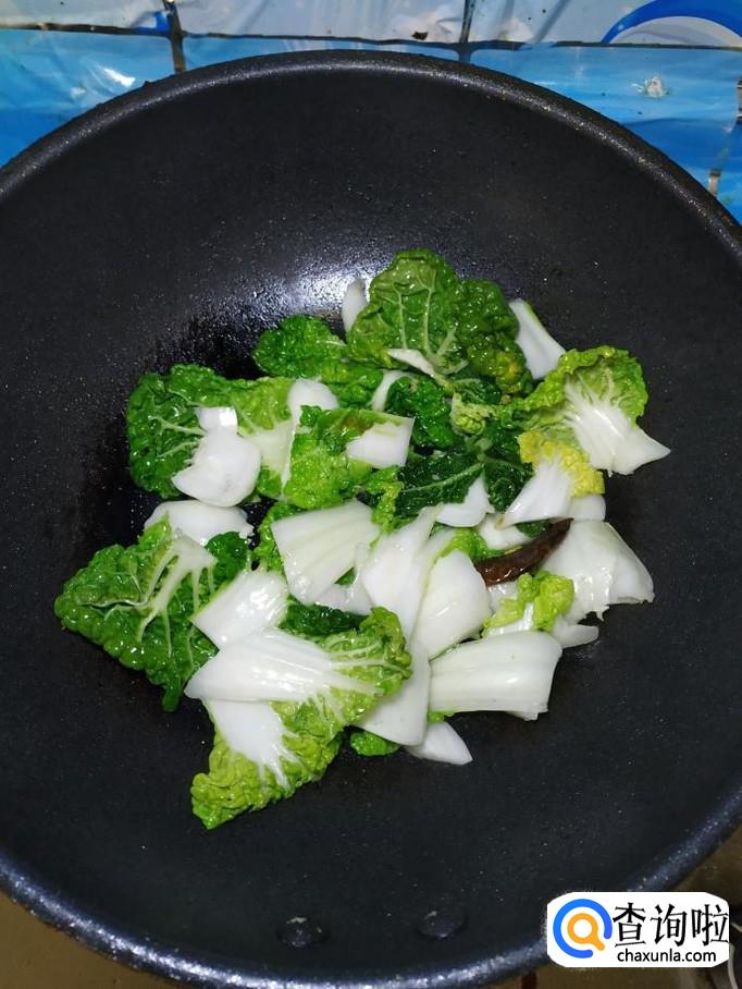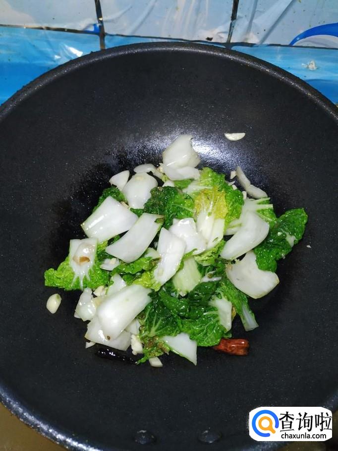 将准备好的乌塌菜,放入锅中翻炒均匀。