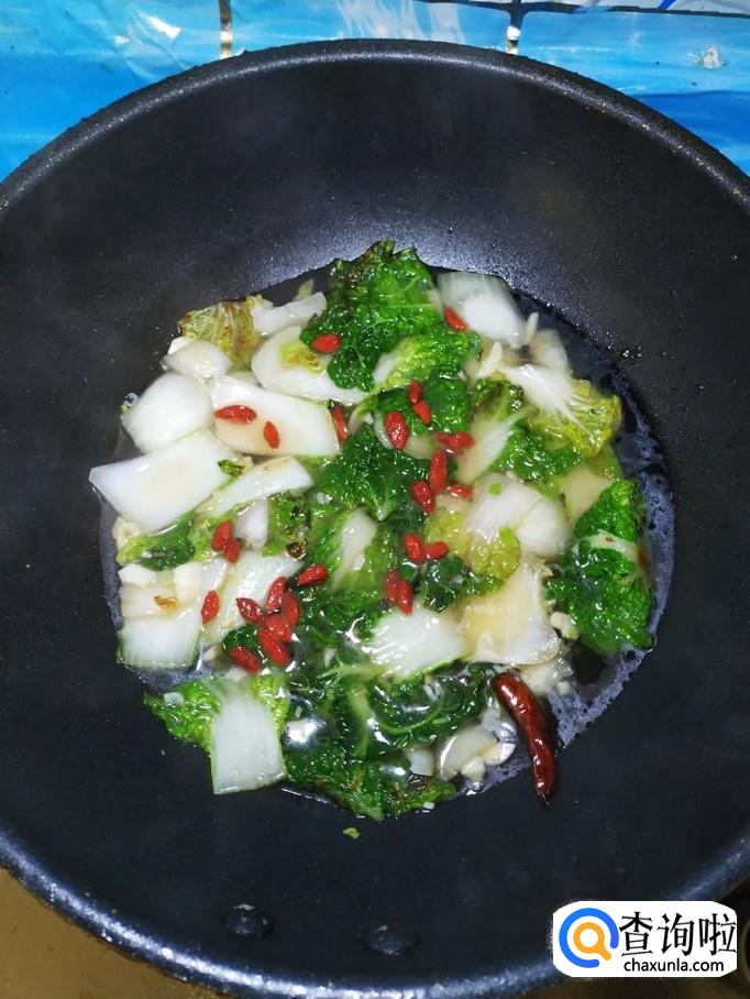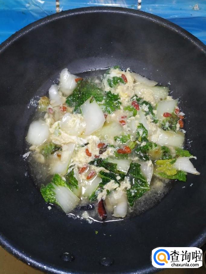 乌塌菜适量,枸杞子适量,鸡蛋适量,盐适量,鸡精适量,干辣椒适量,蒜适量。