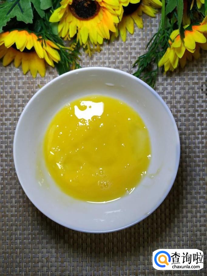 碗中打入一个鸡蛋,加入适量食盐打散,然后将鸡蛋浇在锅中,待定型后,搅拌一下。