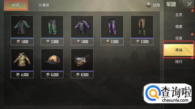 加入军团可以获得一些服装以及头像框和金币奖励,这些在军团系统中都可以看到,进入军团点击右侧的商城选项就可以看到,如图所示
