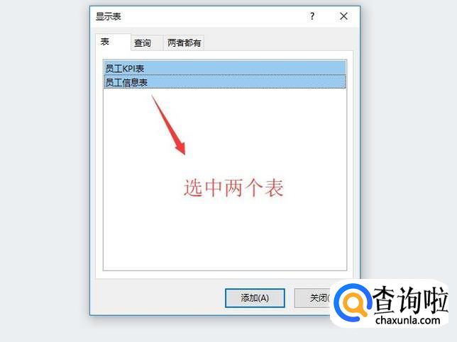 这个时候会弹出显示表界面,我们需要将界面中的表都选中,如下图所示