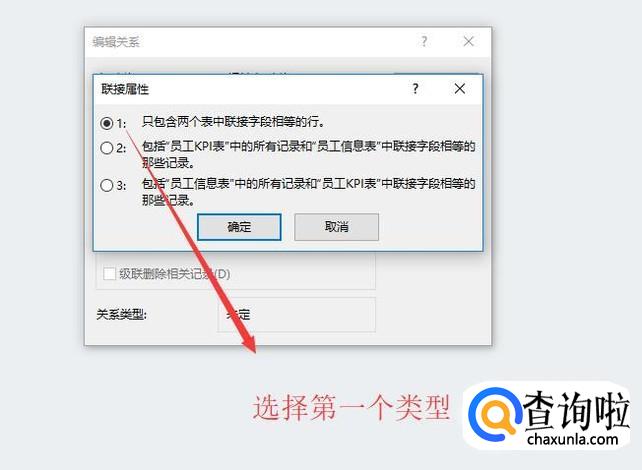 在弹出的联接属性界面中我们勾选第一个选项,如下图所示