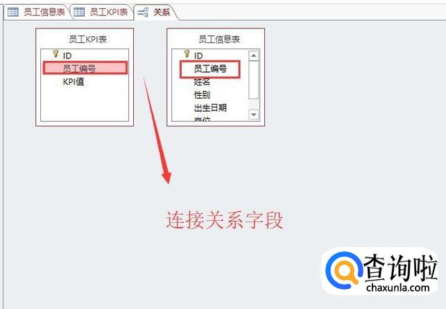 首先我们打开Access数据库,准备两个数据表,如下图所示,两个数据表之间通过员工编号进行关联