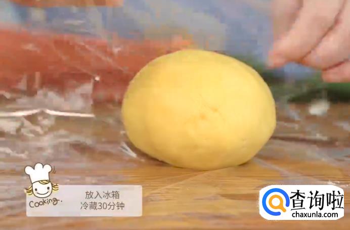 揉成团后,包保鲜膜放冰箱冷藏30分钟。