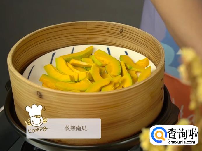 蒸熟的南瓜,蒸熟后倒入料理机中。