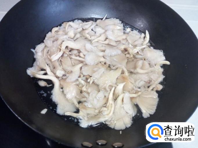 把鲜蘑用开水焯一下,水开后入锅30秒钟捞出,迅速用冷水过凉,攥干水分。
