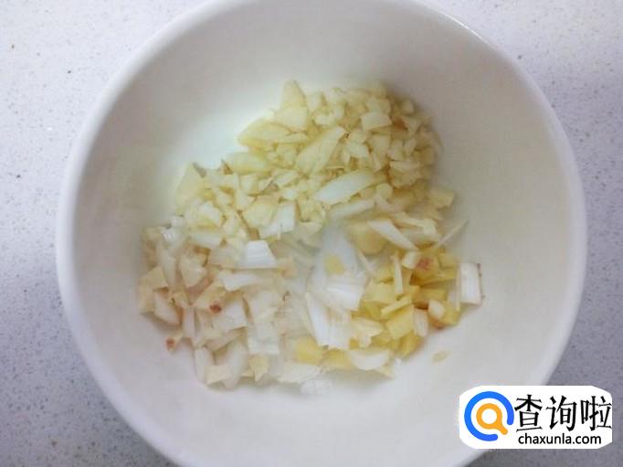 葱,姜,蒜,切成末,备用。