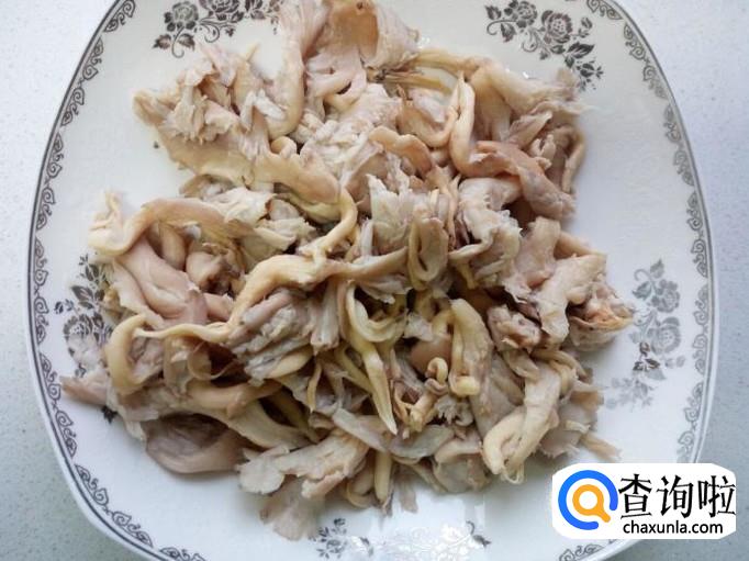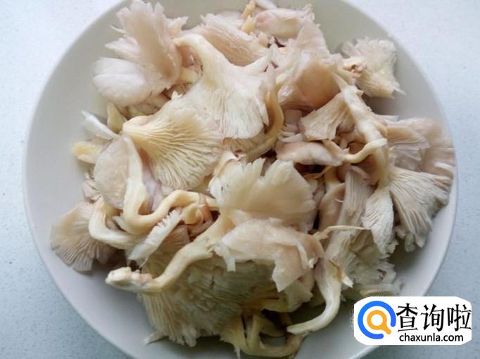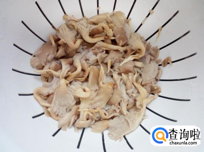 成朵的鲜蘑去根,用手掰成片,收拾清洗干净,控干水分。