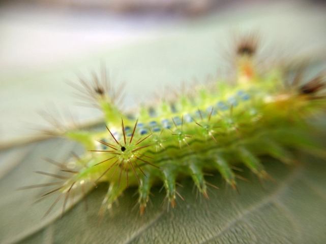 从小居住在农村的朋友应该都看见过这种绿色的虫子,甚至被它咬过。我家乡管这种虫子叫“洋辣子”,别看它外表弱小,攻击力却爆表,被它蛰上一口的人,那感觉比被泼了一盆辣椒汁还要辣,简直就是摸一下让人提神醒脑,抓一下神魂颠倒。