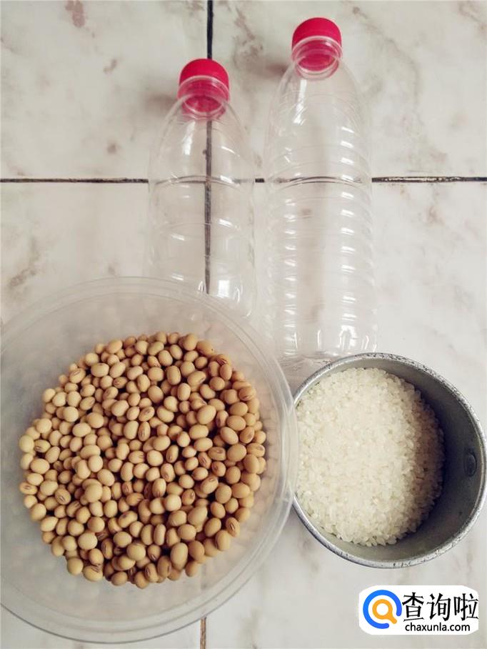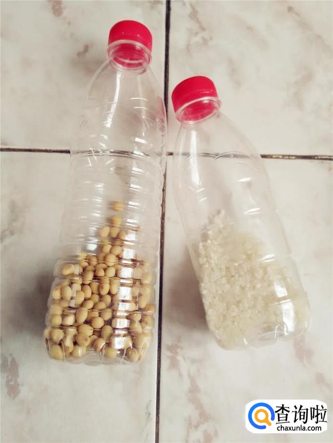 准备两个塑料瓶子、黄豆、大米。