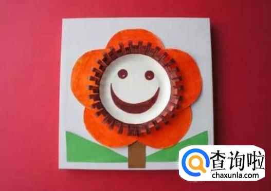 拿出一个白色纸盘,用彩色笔画出一个笑脸,然后将纸盘的边边进行染色,这样花蕾就完成了。