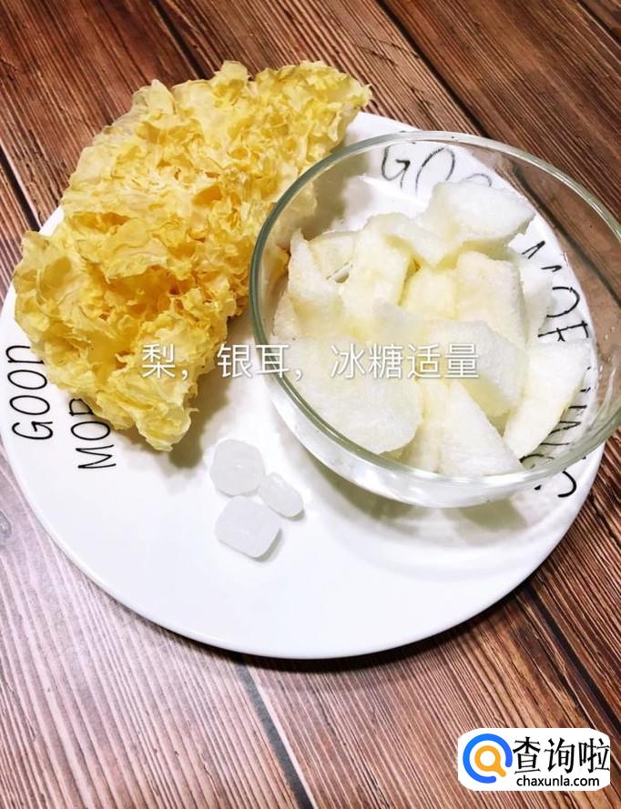 首先准备好所有的食材,如下图所示。小贴士:梨,银耳和适量的糖。