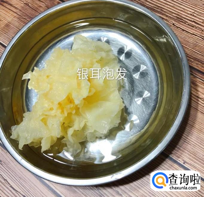 然后将银耳用适量的清水泡发,如下图所示。
