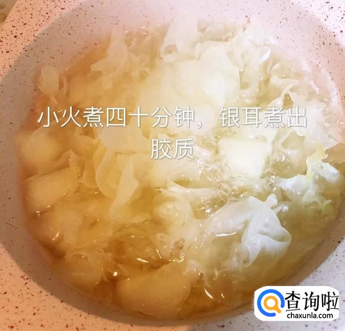 接着等到银耳煮出胶质就可以关火了。