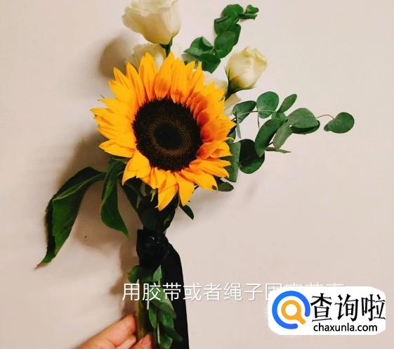 首先用交待或者绳子固定花束。