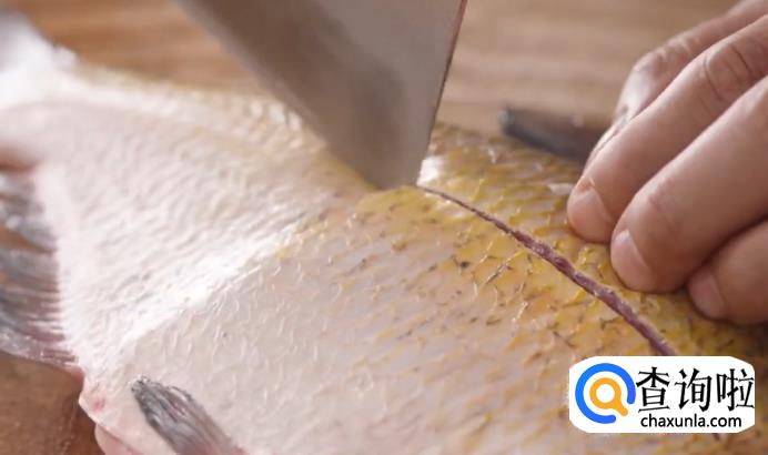 1、武昌鱼的肉质比较细嫩,小的鱼刺很多,所以打兰花刀的时候要顺着鱼刺打。