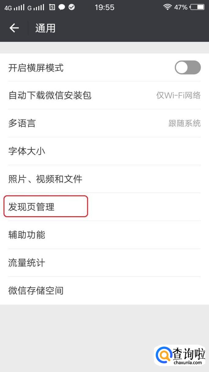 我们在“通用”界面内就找到“发现页管理”了,点击一下。