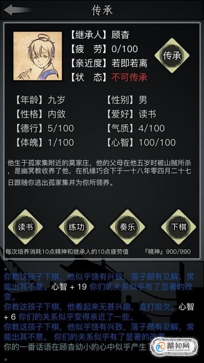 然后对孩子进行培养,当所有的亲密值达到100就可以传承了。
