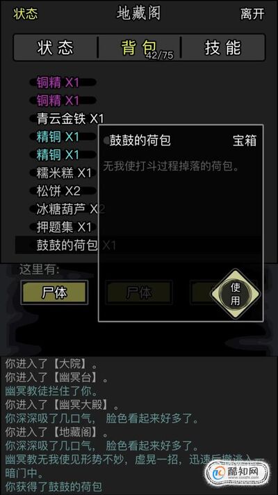 然后捡起地上的荷包,打开会随机掉落钥匙 ,要是就是重要的道具之一,如果没有掉落,那么就等副本刷新之后再来一次。