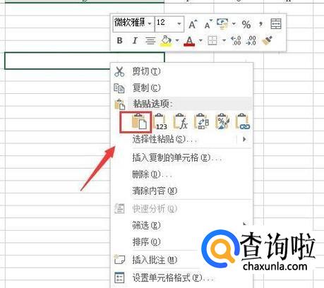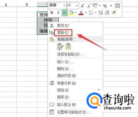 点击复制选项在另外的一列处选择单元格单击鼠标右键找到粘贴选项,如图所示: