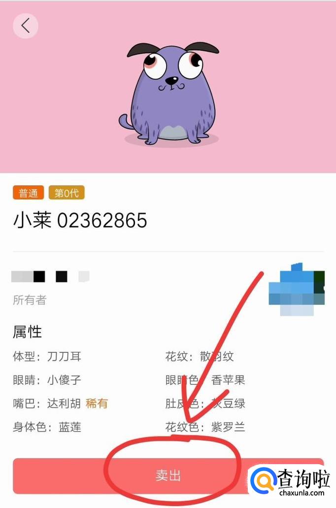 点击小狗狗,就可以进入卖出界面,点击"卖出"。