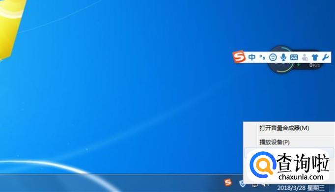 首先,我们现在桌面右下角右键点一下那个小喇叭图标,在弹出的对话框中单击“录音设备”