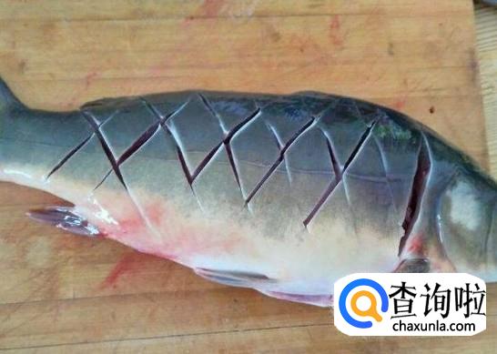 将鲤鱼去腮和内脏,洗净,用刀在鱼背上切几刀,烧的时候便于入味,同时,用碗兑汁,放入酱油、料酒、盐、白糖、醋。
