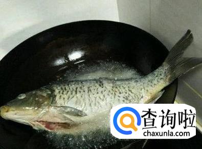 锅中倒入多一些食用油,烧热后,将鱼放入锅中煎,不要频繁地翻动鱼,以免鱼皮掉落,等一面煎至金黄后,翻到另一面,继续煎。