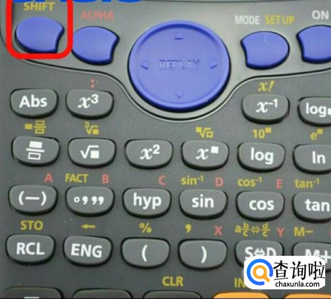 按住计算器中的“SHIFT”键。如下图所示。
