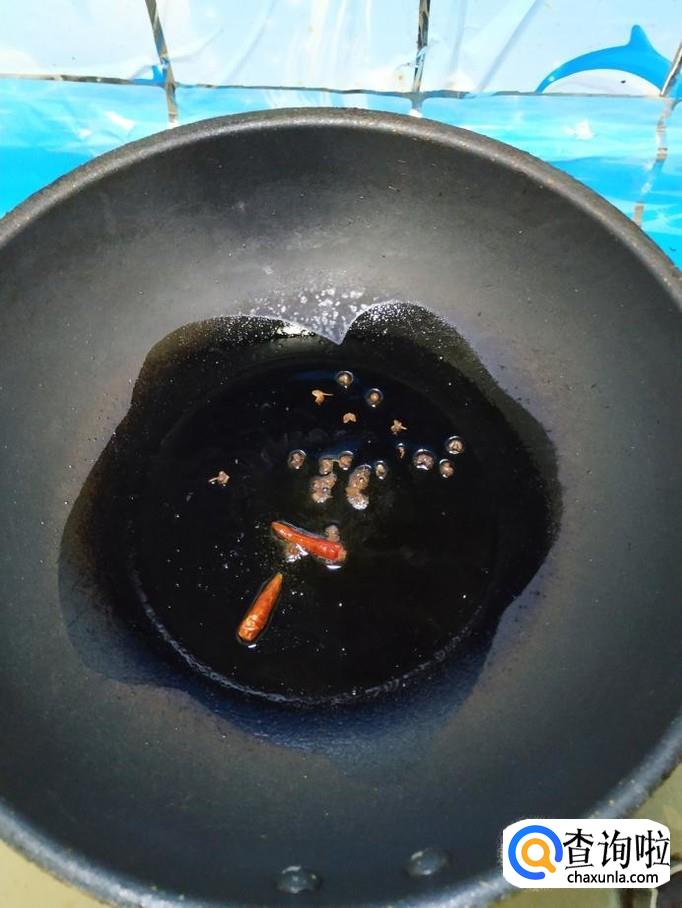 炒锅中放入适量油,油热后放入花椒和干辣椒炒香,然后将大白菜放入锅中,翻炒均匀。